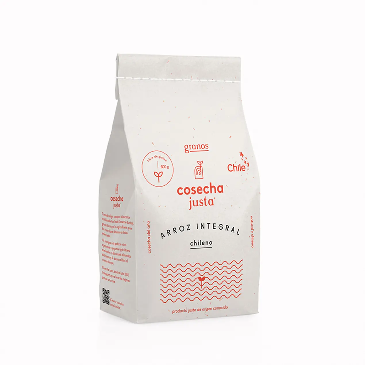 Arroz integral cosechado en la región del Maule. Al ser integral aporta más fibra que el arroz blanco.