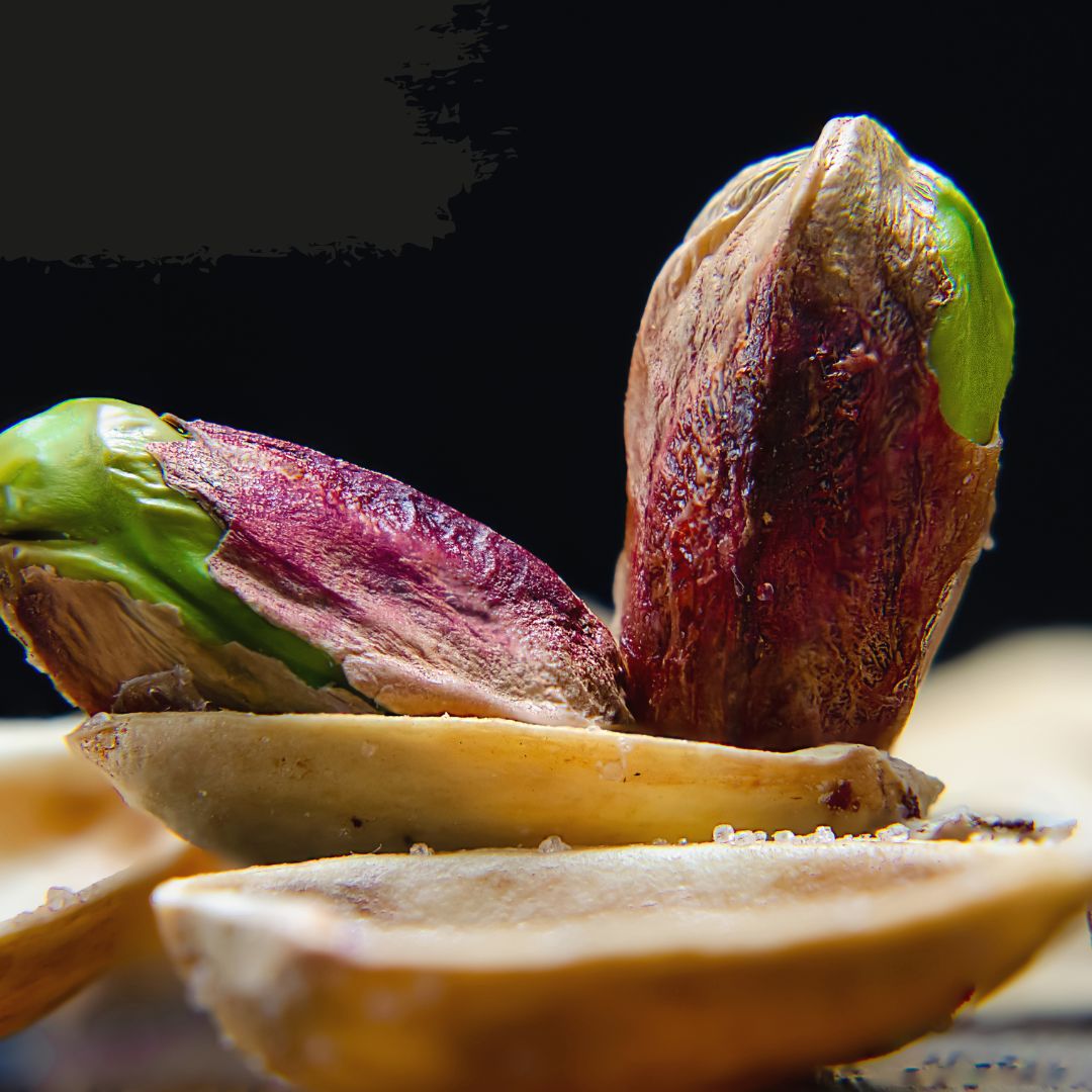Los pistachos contienen buenas cantidades de zeaxantina y luteína, que ayudan a prevenir el daño ocular generado con la edad, como visión borrosa o reducida, además protege los ojos de los rayos ultravioleta del sol. Es rico en proteínas, fibra, grasas saludables, antioxidantes, magnesio y vitamina B6.